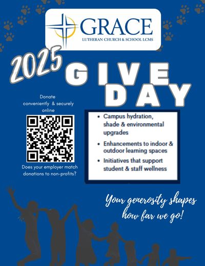 Use the QR code to visit our safe online donation site or go to the Support Grace tab at www.glcfl.org